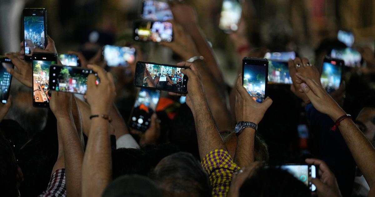 Supporters of Bharatiya Janata Party try to capture a glimpse of Prime Minister Narendra Modi with their mobile phones during a road show ahead of the West Bengal state Legislative