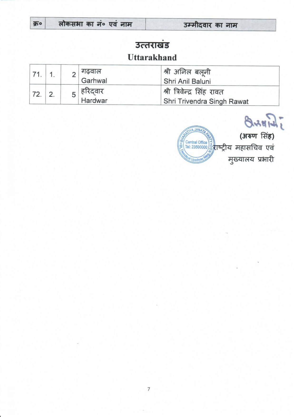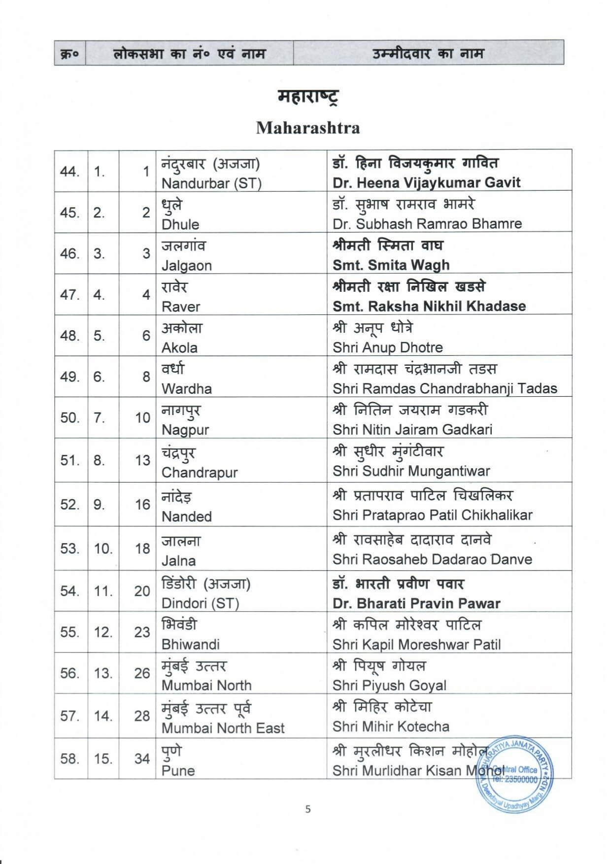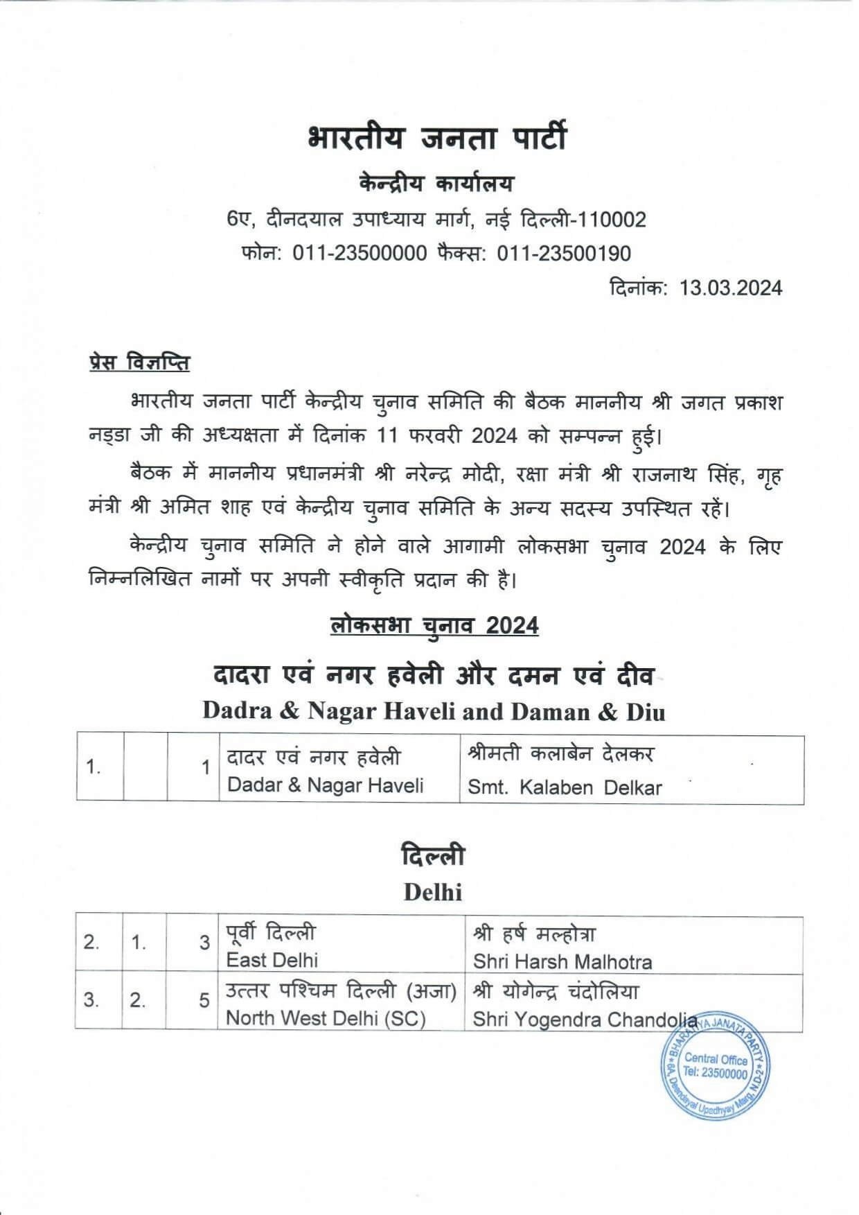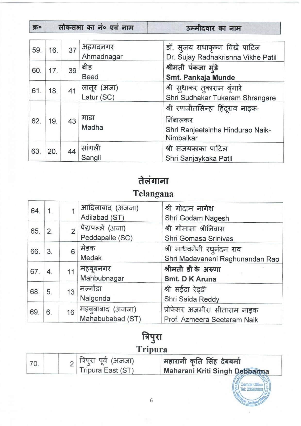 भाजपा की दूसरी सूची जारी, लोकसभा के 72 उम्मीदवार किए घोषित