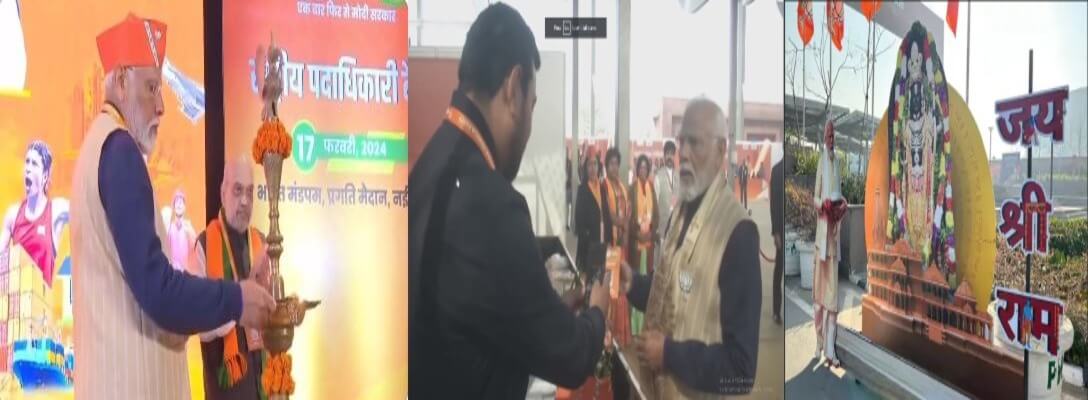 भाजपा के दो दिवसीय राष्ट्रीय सम्मेलन में पहुंचे पीएम मोदी, अध्यक्ष नड्डा ने किया स्वागत,पीएम मोदी ने देखी विकास प्रदर्शनी