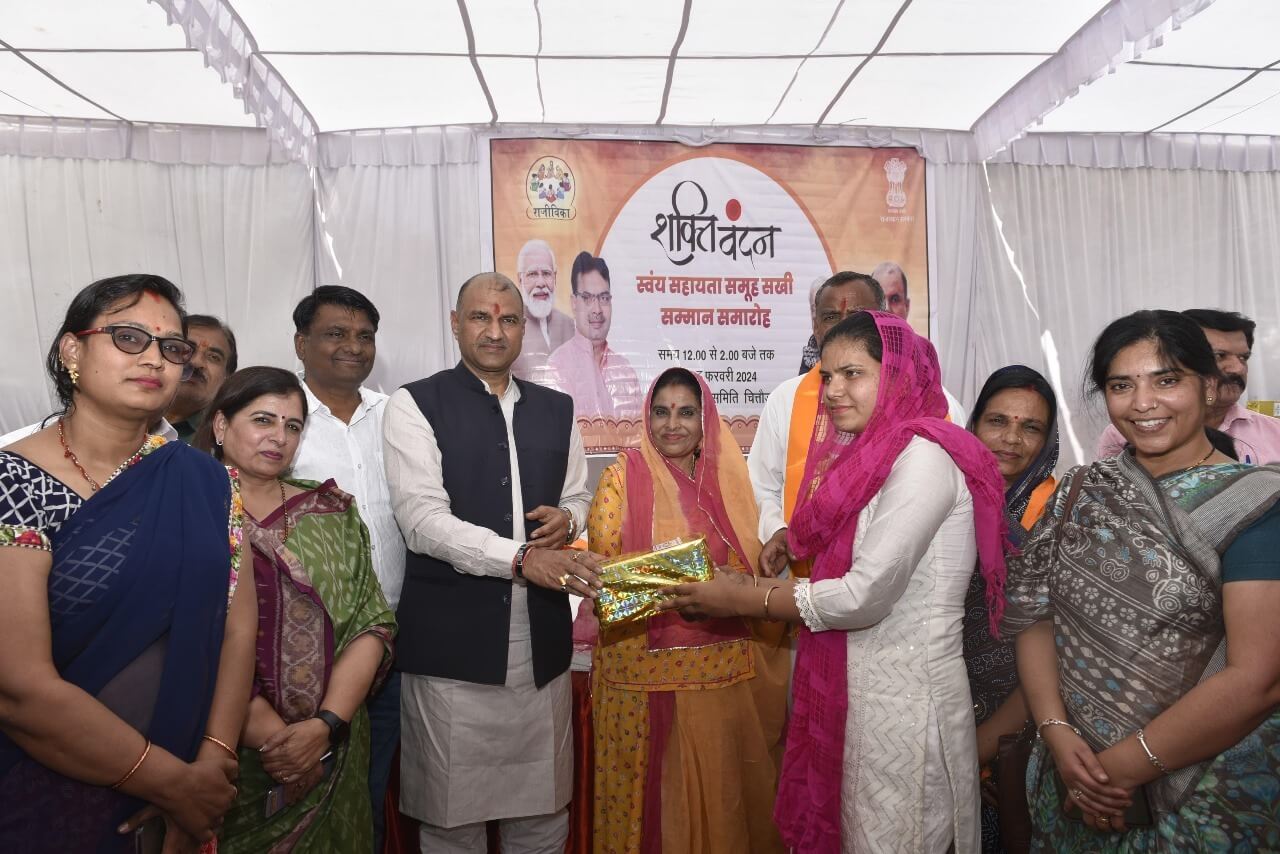 शुक्रवार को चित्तौड़ में ’’शक्ति वंदन’’ कार्यक्रम को सम्बोधित करते हुए कहा कि पीएम मोदी ने पिछले दस सालों में महिलाओं की मजबूती और उन्नति के लिए अनेक काम किए है। उन्होंने कहा कि नारी शक्ति वंदन अधिनियम लागू होने के बाद महिलाओं को लोकसभा और विधानसभाओं में 33 प्रतिशत आरक्षण मिलेगा, देश में एक करोड़ लखपति दीदी बन गई और इस बजट में दो करोड़ लखपति दीदी बनाने का लक्ष्य लिया है।