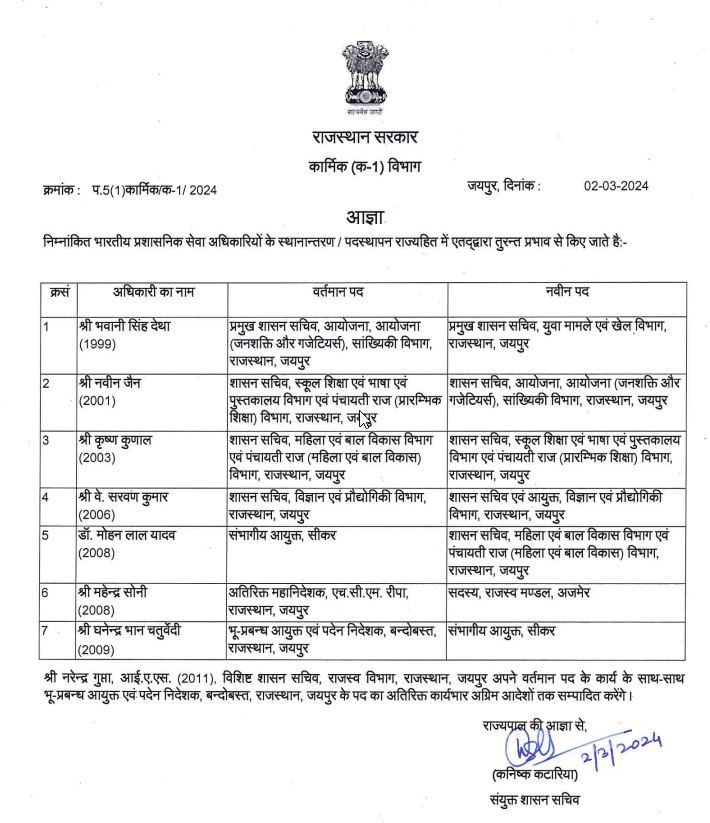 Homeराज्य राज्य 7 आईएएस अधिकारियों के तबादले By NSC9 NEWS March 2, 2024 0 410 FacebookTwitterPinterestWhatsApp सरकार ने 7 आईएएस अधिकारियों के तबादले कर दिए हैं। विस्तार से देख सूची:- Share FacebookTwitterPinterestWhatsApp Previous articleनर्सिंग शिक्षा के लिए युवाओं को मिलेंगे बेहतर अवसर, स्वास्थ्य सेवाओं का होगा सुदृढ़ीकरण, बरसों से लंबित प्रकरणों का निस्तारणNext articleसनातन धर्म के संरक्षण में साधु-संतों का विशेष योगदान, यज्ञ से होती है आत्मा की शुद्धि – मुख्यमंत्री भजनलाल शर्मा NSC9 NEWS Related Articles Uncategorized अंतरिक्ष में भारत की वैश्विक छलांग: और भविष्य का रोडमैप आपकी कलम से संयुक्त राष्ट्र सस्टेनेबल डेवलपमेंट गोल्स में तकनीकी विकास के साथ मानवीय मूल्यों और स्थानीय समाधानों का समन्वय आवश्यक: डॉ. डी.पी. शर्मा आपकी कलम से अंतरिक्ष में भारत की वैश्विक छलांग: और भविष्य का रोडमैप LEAVE A REPLY Cancel reply Comment: Please enter your comment! Name:* Please enter your name here Email:* You have entered an incorrect email address! Please enter your email address here Website: Save my name, email, and website in this browser for the next time I comment. Stay Connected0FansLike0FollowersFollow0SubscribersSubscribe - Advertisement - Latest Articles Uncategorized अंतरिक्ष में भारत की वैश्विक छलांग: और भविष्य का रोडमैप आपकी कलम से संयुक्त राष्ट्र सस्टेनेबल डेवलपमेंट गोल्स में तकनीकी विकास के साथ मानवीय मूल्यों और स्थानीय समाधानों का समन्वय आवश्यक: डॉ. डी.पी. शर्मा आपकी कलम से अंतरिक्ष में भारत की वैश्विक छलांग: और भविष्य का रोडमैप आपकी कलम से भारत-रूस मैत्री : दीर्घकालिक मित्रता के आयाम, संभावनाएँ और चुनौतियाँ आपकी कलम से जगदीश चंद्र बोस: वैज्ञानिक चेतना के प्रणेता और आधुनिक भौतिकी के अदृश्य प्रेरणास्रोत- डॉ डीपी शर्मा Load more