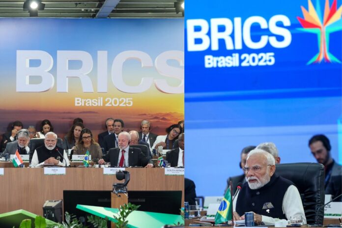 ब्राजील के रियो डी जनेरियो में आयोजित हो रहे 17वें BRICS सम्मेलन में जम्मू-कश्मीर के पहलगाम में 22 अप्रैल को हुए आतंकी हमले की धारा 34 में कड़ी शब्दों में निंदा की गई है।प्रधानमंत्री नरेंद्र मोदी ने इस समिट में कहा कि पहलगाम आतंकी हमला सिर्फ भारत ही नहीं, बल्कि पूरी इंसानियत पर चोट है। आतंकवाद की निंदा हमारा सिद्धांत होना चाहिए, सुविधा नहीं। इसके साथ ही उन्होंने एक नई विश्व व्यवस्था की मांग उठाई।