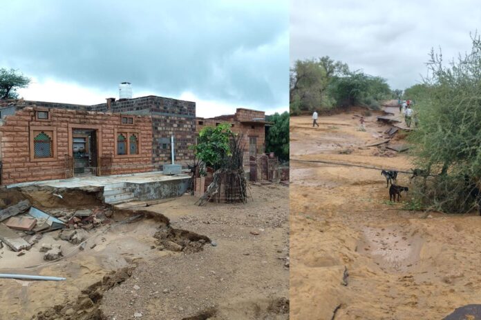जिससे वहा 15-20 मकान ढह गए। इस घटना में लगभग सौ से अधिक मवेशियों की मौत हो गई। खेतों में लगी मूंगफली और बाजरे की फसल पूरी तरह नष्ट हो गई। बालेसर उपखंड अधिकारी भवानी सिंह चारण ने रविवार को देवड़ा की ढाणी, भांडू चारणान और जाटी भांडू ग्राम पंबायत का दौरा किया। उन्होंने मकानों और फसलों के नुकसान का जायजा