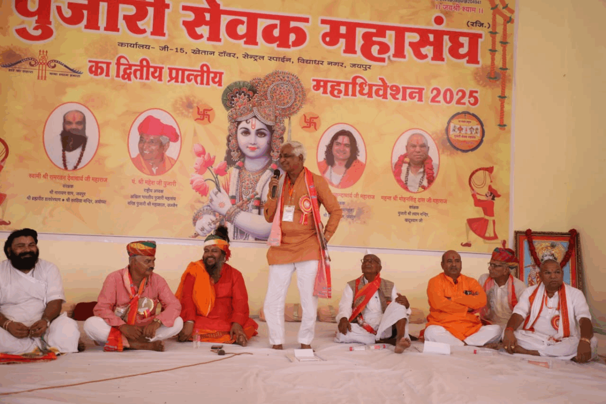 आस्था, विश्वास और भक्ति का सबसे बड़ा केंद्र यानी राजस्थान का सीकर स्थित पवित्र खाटू धाम। जहां बीते दिनों पुजारी सेवक महासंघ का द्वितीय महाधिवेशन आयोजित किया गया। लगातार दो दिनों तक चले इस महाधिवेशन में प्रदेशभर से करीब 8 हजार पुजारी शामिल हुए। इस दौरान पुजारियों को मजबूत करने और उनके अधिकारों की रक्षा को लेकर व्यापक स्तर पर चर्चा हुई। यह महज एक चर्चा नहीं बल्कि पुजारियों की आवाज़, उनके अधिकारों की आवाज और सनातन धर्म की अस्मिता का उद्घोष था। महाधिवेशन में पुजारियों ने मंच से राज्य सरकार के सामने अपनी मांगों को स्पष्ट तौर पर रखा।