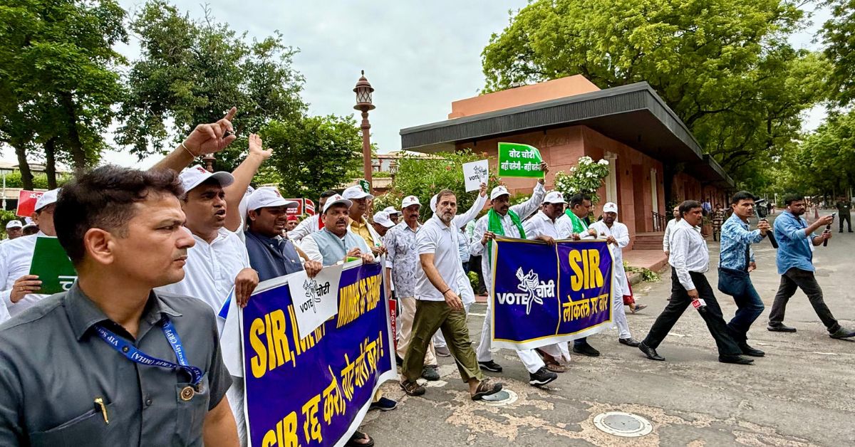बिहार में मतदाता सूची के विशेष गहन पुनरीक्षण (SIR) और कथित “वोट चोरी” के खिलाफ सोमवार को विपक्षी दलों के सांसदों ने संसद भवन परिसर से जोरदार मार्च निकाला। मार्च में लोकसभा में नेता प्रतिपक्ष राहुल गांधी, राज्यसभा में विपक्ष के नेता एवं कांग्रेस अध्यक्ष मल्लिकार्जुन खरगे, समाजवादी पार्टी के अध्यक्ष अखिलेश यादव, कांग्रेस महासचिव प्रियंका गांधी वाद्रा और कई अन्य विपक्षी सांसद शामिल हुए।
